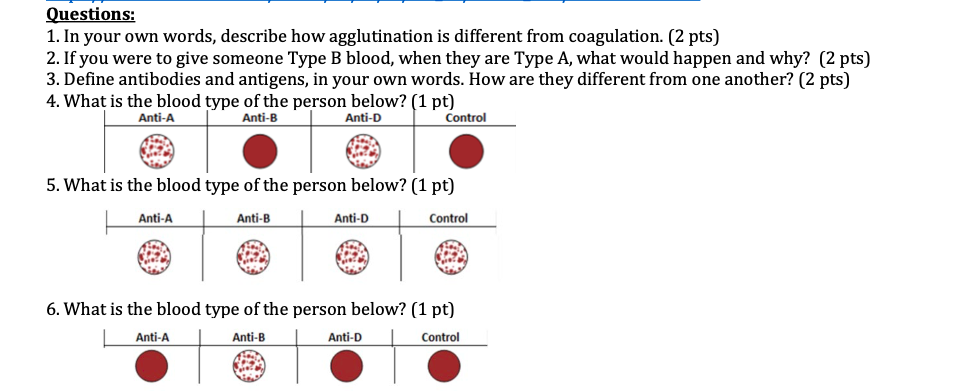Agglutination occurs when an antibody forms in the blood and bacteria blood cells and other cells clump together to fight infections. For example to determine patients blood type the red blood cells of the person can be mixed with. Coagulation refers to a blood clot that forms because of an open wound or from cholesterol within blood vessels.